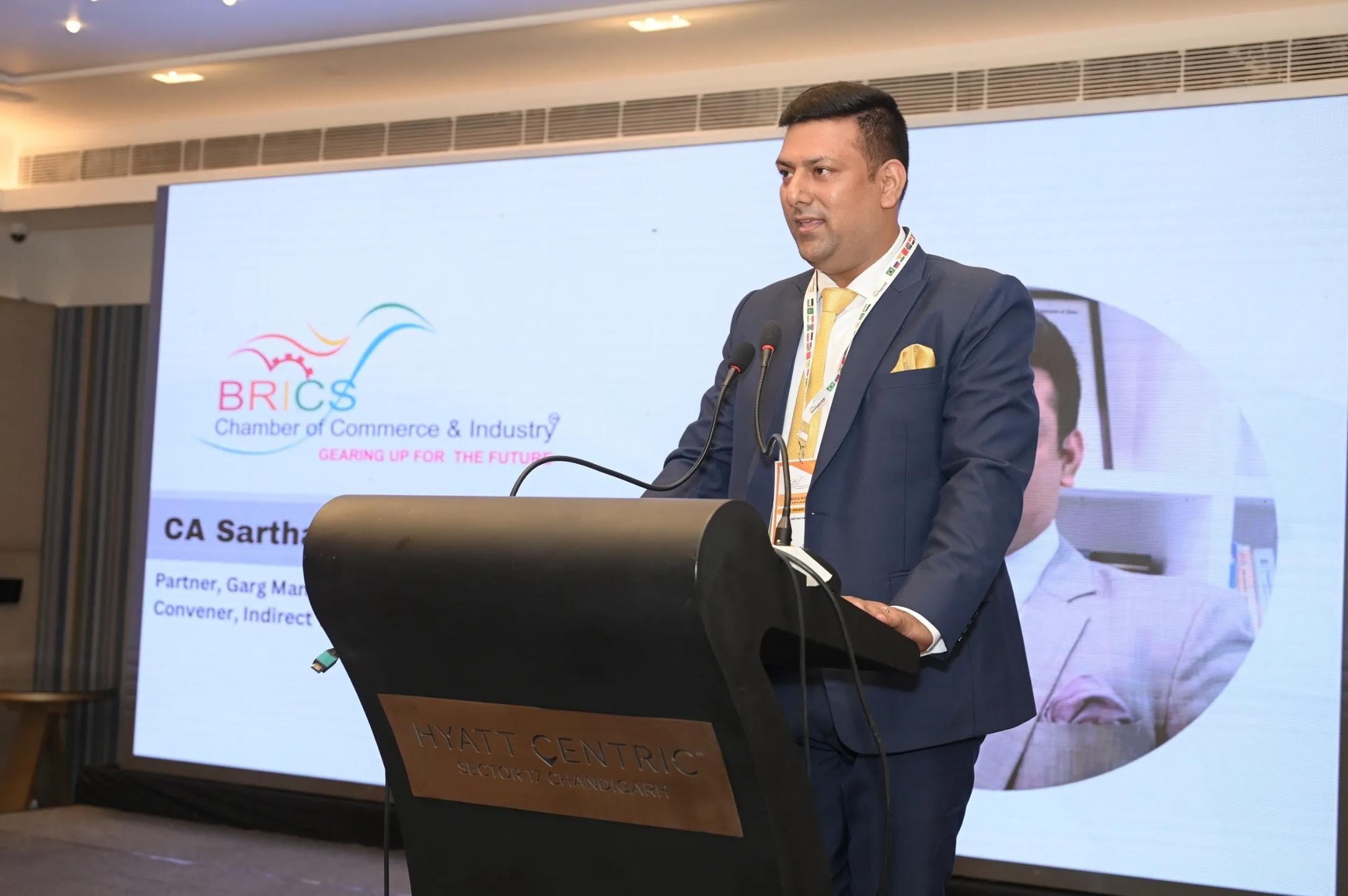 CA Sarthak Garg, Convenor of the BRICS CCI Indirect Tax Vertical and Partner at Garg Manoj & Associates, delivered the opening remarks. Mr. Garg emphasized the need to demystify GST law and address grey areas like ISD that continue to puzzle practitioners and businesses alike.