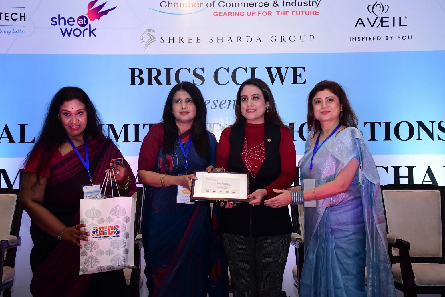 BRICS CCI WE Trailblazers Women Icons Felicitations included Dr. Uma Sharma, Chairperson, Kailash Group of Hospitals, Ms. Sushma Rohtas Goel, Chairperson, Omaxe Foundation, Ms. Dilafrose Qazi, Nobel Peace Prize Nominee & Founder & Vice Chairperson of SSM College of Engineering & Technology & Management (Srinagar), Dr. Valli Arunachalam, Semiconductor Technologist & Philanthropist; Ms. Kavitha Ramachandragowda, Co-Founder & Ex. Director Routematic, Ms. Rajeshwari Kumari, Indian Sports Shooter and Ms. Anshika Verma, IPS (Young Icon).