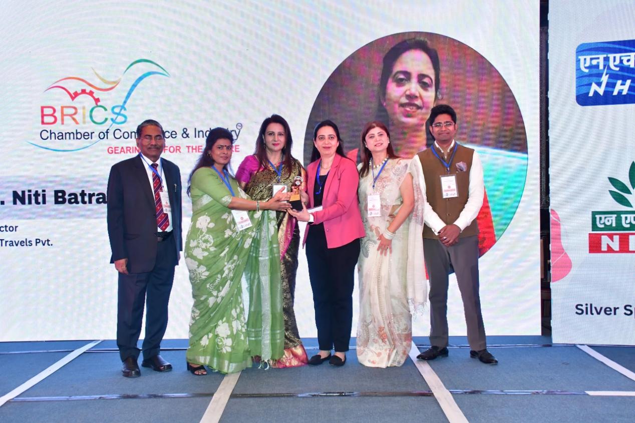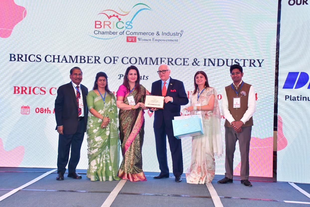 The Summit also recognized the achievements of emerging women entrepreneurs, both within and outside the BRICS CCI network such as Ms. Niti Batra, Director of Joy Travels Pvt. Ltd., Ms. Amrita V Chowdhury, Director of Gaia Smart Cities Solutions Pvt. Ltd., Ms. N J Anitha, Vice-President of SNJ Breweries Pvt. Ltd., Renu Sharma, CEO of Rajwarah Jewellers, Ms. Priti Bajaj, Co-founder, Art Life Gallery and Ms. Simmi Sood, Director, SILVERSEVEN Foundation for their exemplary contributions to entrepreneurship and innovation, fostering economic growth and empowerment.