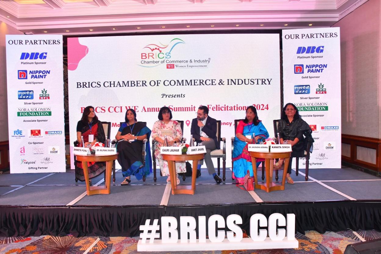 Eminent panelists engaged in insightful discussions on the theme of Women-led Development in India and elucidated on the Pillars of Women-led Development, including Education, Enterprise, Financial Literacy, and Leadership Mentoring. These included Dr. Kalpana Sharma, Former Additional Secretary to Lok Sabha- Parliament of India, Senior Advisor – BRICS CCI, Ms. Kanta Singh, Deputy Country Representative, UN Women India, Dr. Anuradha Agrawal, Indian Council of Agricultural Research (ICAR), Ms. Gauri Jauhar, Executive Director, Energy Transition & Cleantech Consulting, S&P Global Commodity Insights, Mr. Ankit Jhamb, Honorary Advisor, BRICS CCI, Shweta Punj, Deputy Editor, Moneycontrol.com and Co-founder Whypoll, Mr. Gaurav Choudhury, Co-founder and CEO at Earshot Media, Mrs. Anita Makkar, Founder Principal, The HDFC School, Ms. Shormishtha Ghosh- Governing Body Member, BRICS CCI, Ms. Amrita V Chowdhury, Director-Gaia Smart Cities Solutions P Ltd. and Ms. Semenushkova Ekaterina, Founder, Atlas Social and Cultural Relations Development Centre.